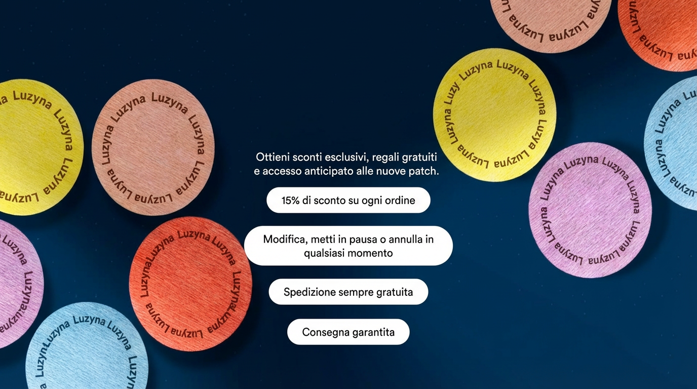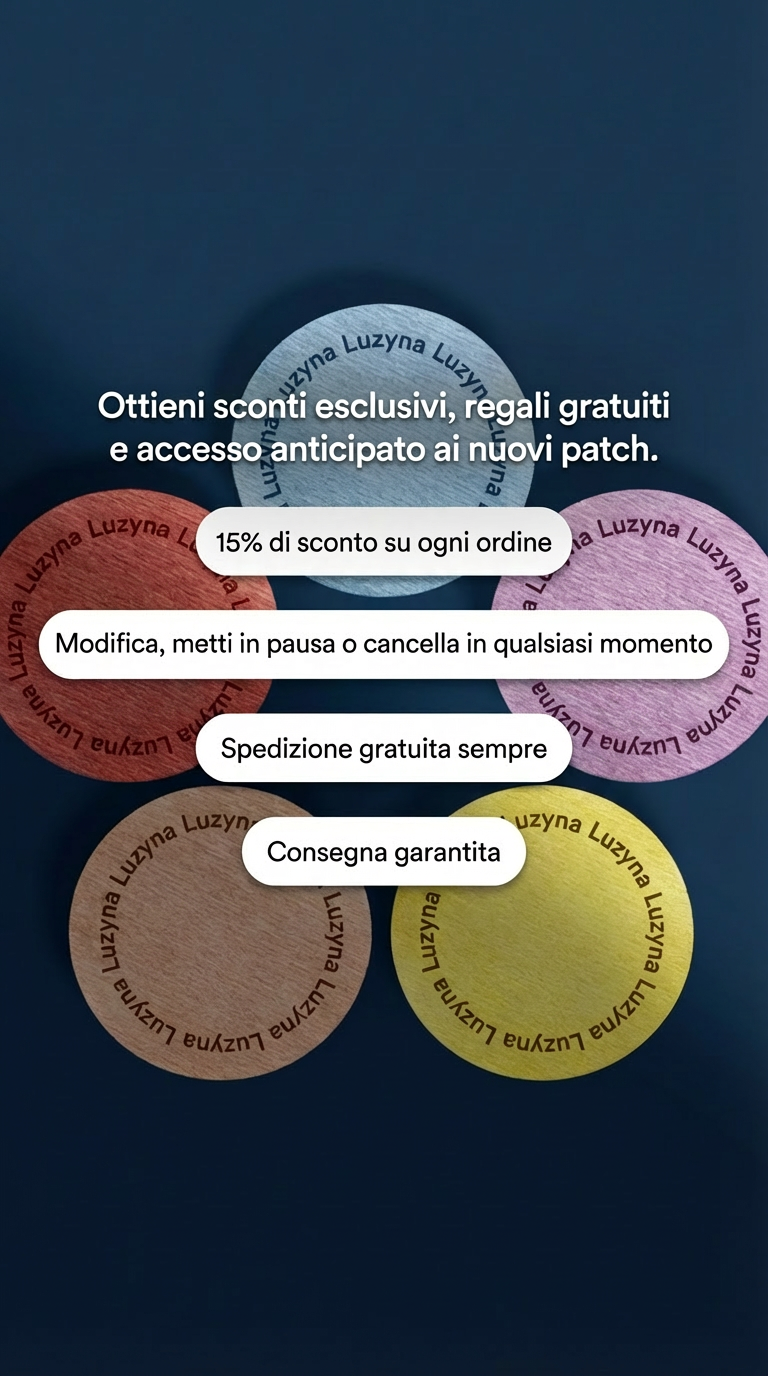 I nostri Luzyna Patches sono sviluppati con formule mirate alla funzionalità, pensate per supportare diverse esigenze di benessere, bellezza e stile di vita. Ogni patch è progettato con cura per offrire benefici specifici, aiutandoti a sostenere il tuo benessere in modo semplice ed efficace.