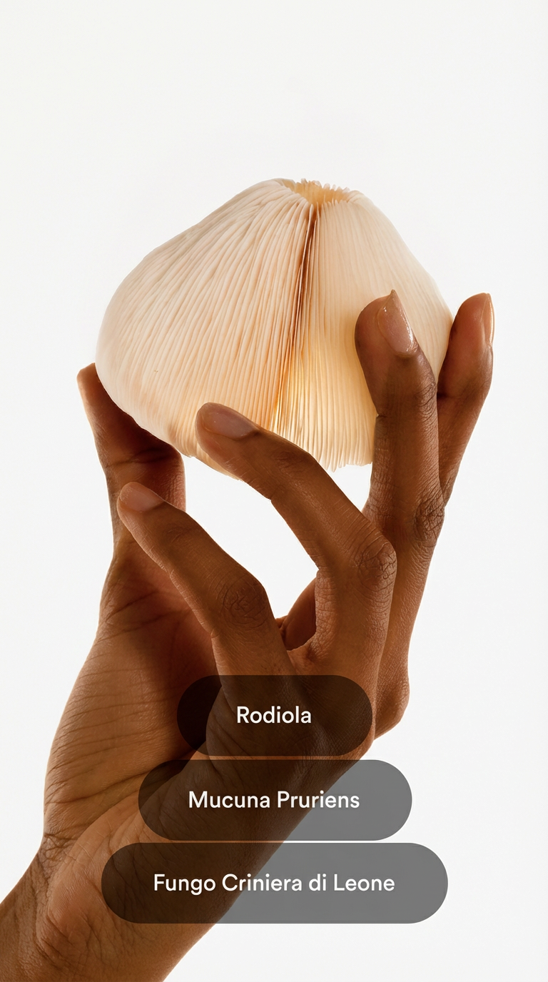 Estratto di Mucuna Pruriens 12 mg, 5-HTP 5 mg, Estratto di Lion’s Mane 4,5 mg, Estratto di Rhodiola 3,5 mg