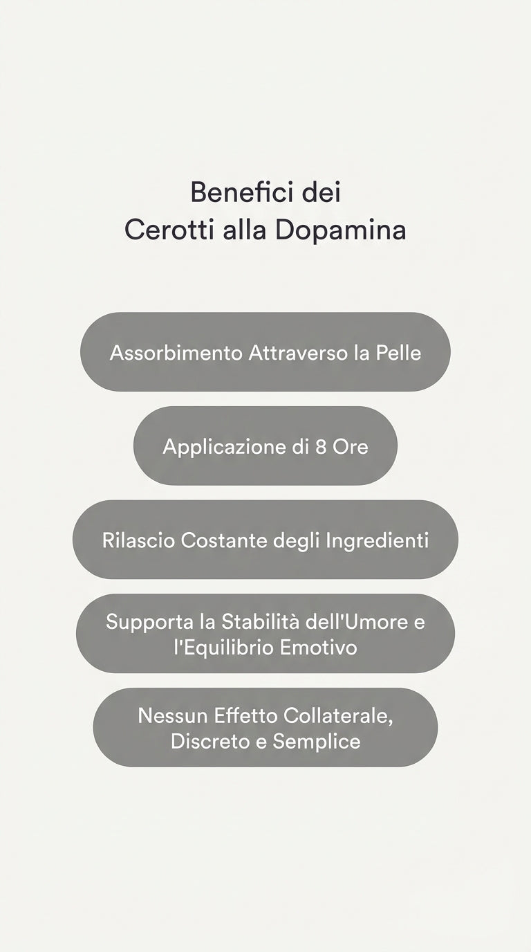 I Cerotti alla Dopamina supportano la naturale produzione di dopamina dell’organismo, anziché fornire dopamina direttamente.